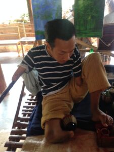 Soutien financier pour la poursuite de cursus universitaire de deux frères artistes peintres privés de leurs mains dès la naissance. Ils réalisent avec leurs pieds des peintures sur bois et laque et suivent des études supérieures.